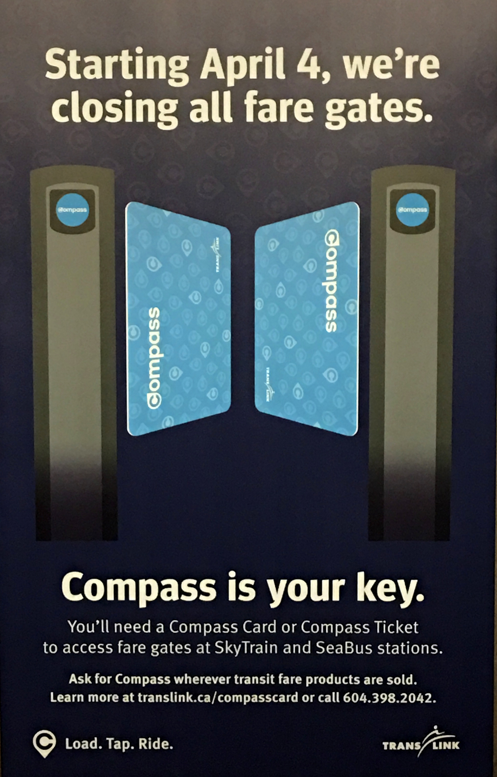 大溫哥華地區的各位請注意!從 2016 年 4 月 4 日起,Skytrain 和 Seabuss 所有驗票閘門就會像台灣一樣每一扇都是關著的,唯有 Compass 卡才能夠通行。目前這樣至少一個門開著,有好也有不好......